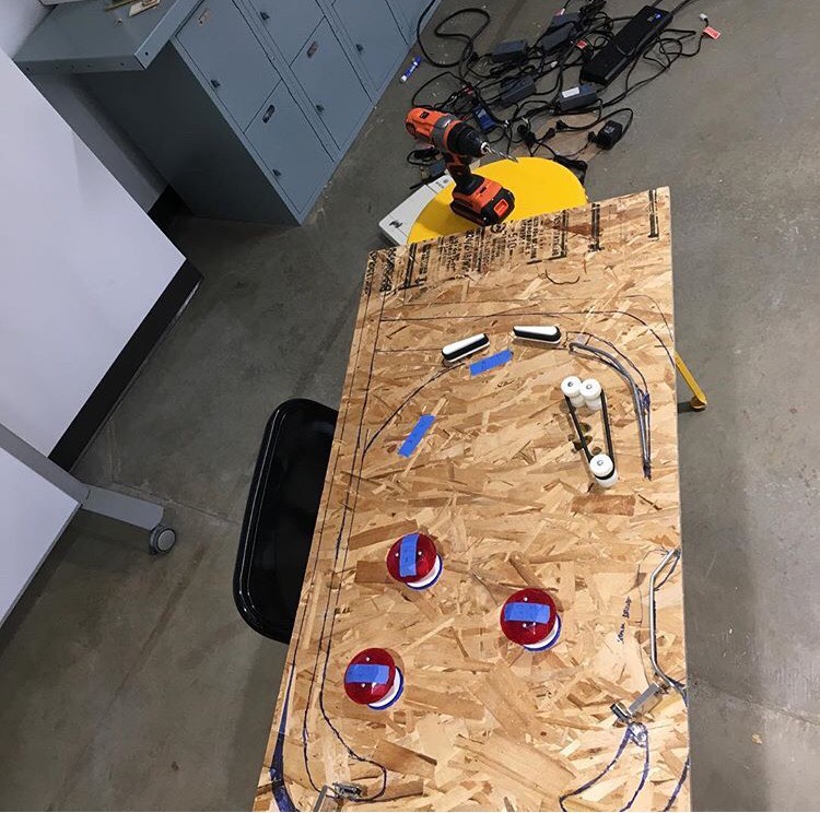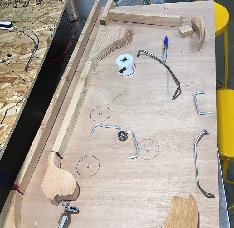 What we did is make a pinball machine. How it works is that there is a shooter which is where the ball starts and where you will launch it into the play field where everything in the game will happen. There is the flippers which you use to keep the ball in play, and hit the ball into the slingshots and the pop-bumpers. The pop-bumpers and slingshots are what you score points on and what launches the ball all over the place. The main objective of the game is to hit the bumpers and slingshots as many times as possible, to score as many points as you can.