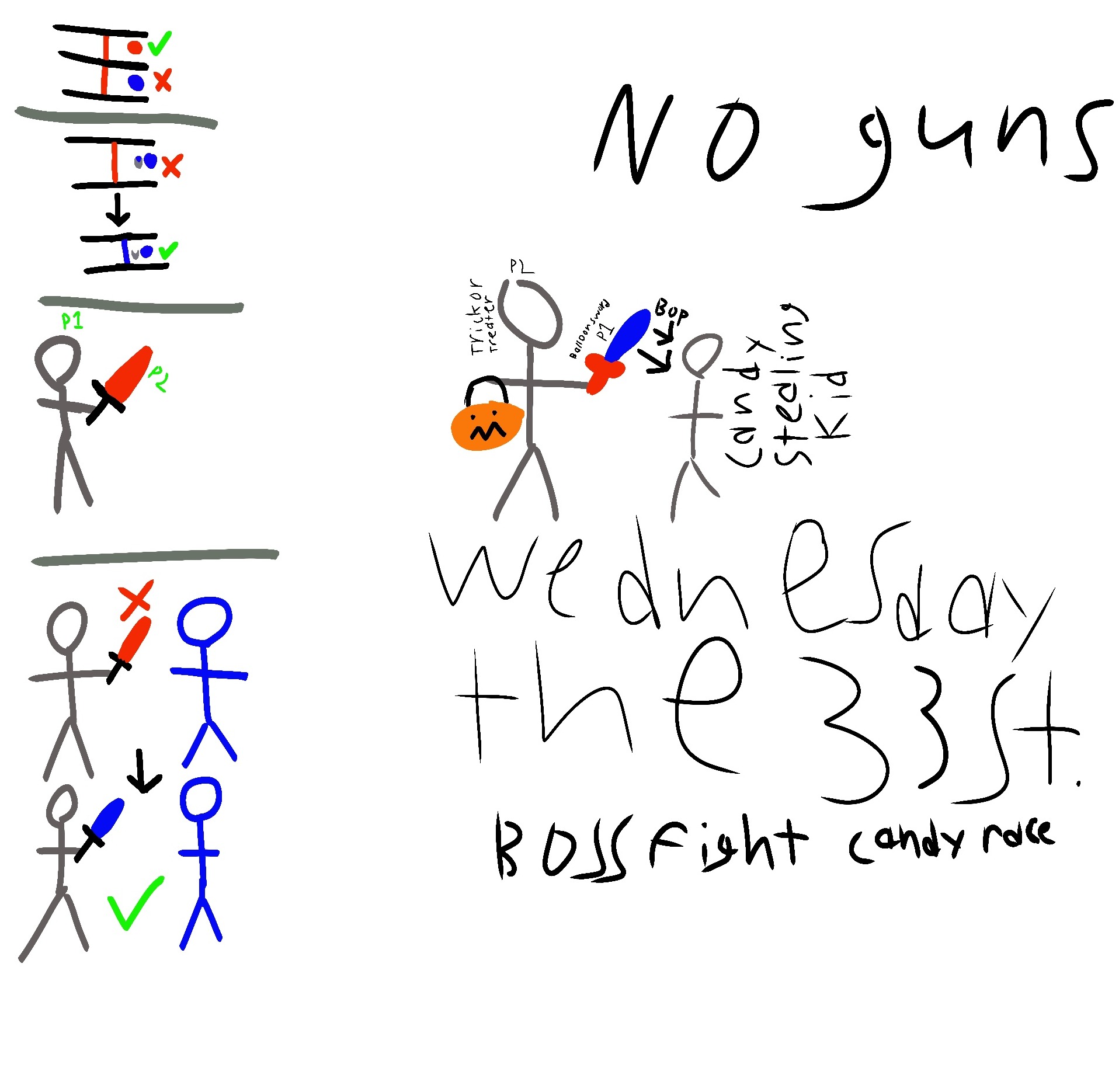 Wednesday the 33st is a fun Halloween (or Hallowhen? as it is is called in the game) themed game in which you explore the neighborhood of the main protagonist, Timmy Tomson. As you collect candy from trick or treating, you will have to defend yourself from the pesky little kids trying to steal your candy, luckily you brought your trusty balloon sword to bop any little kids who get too close.