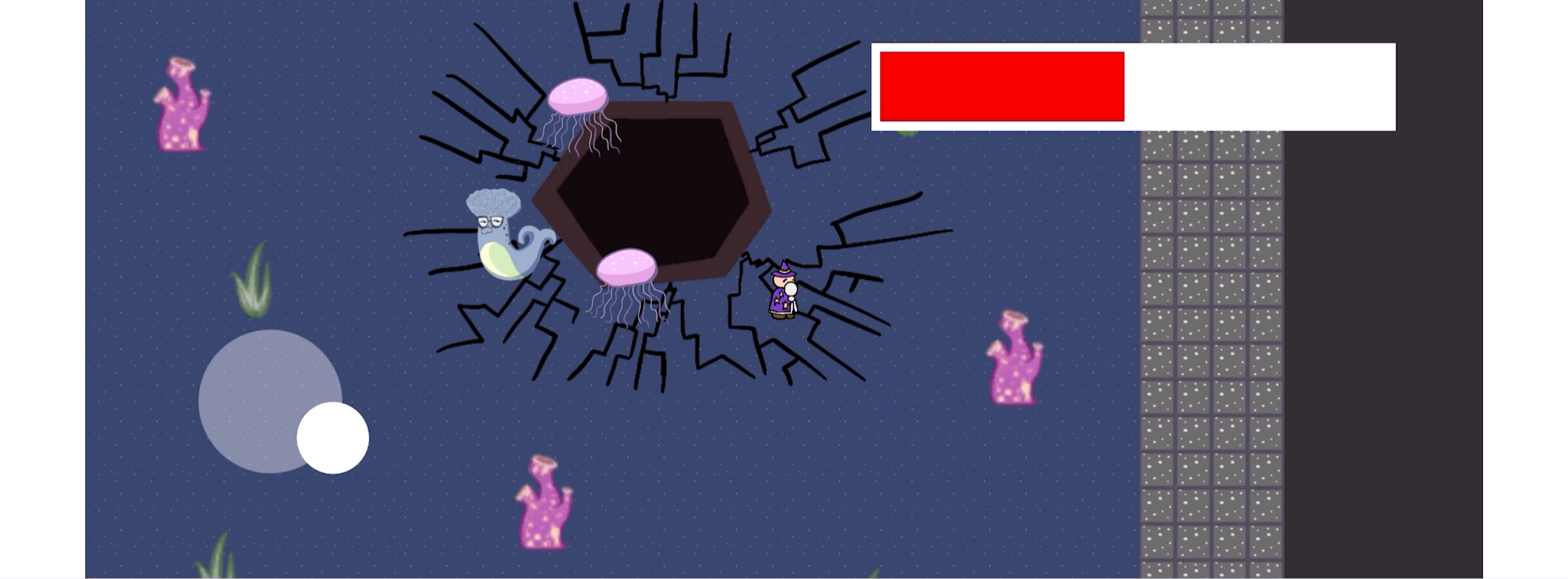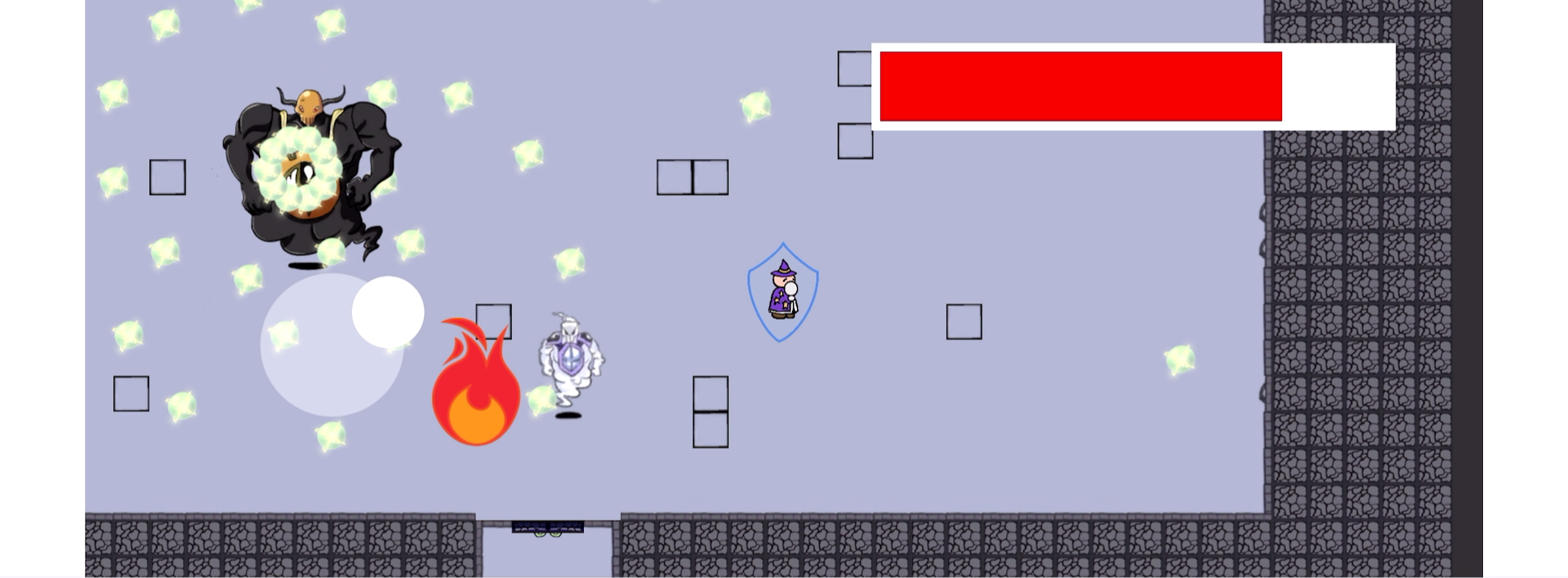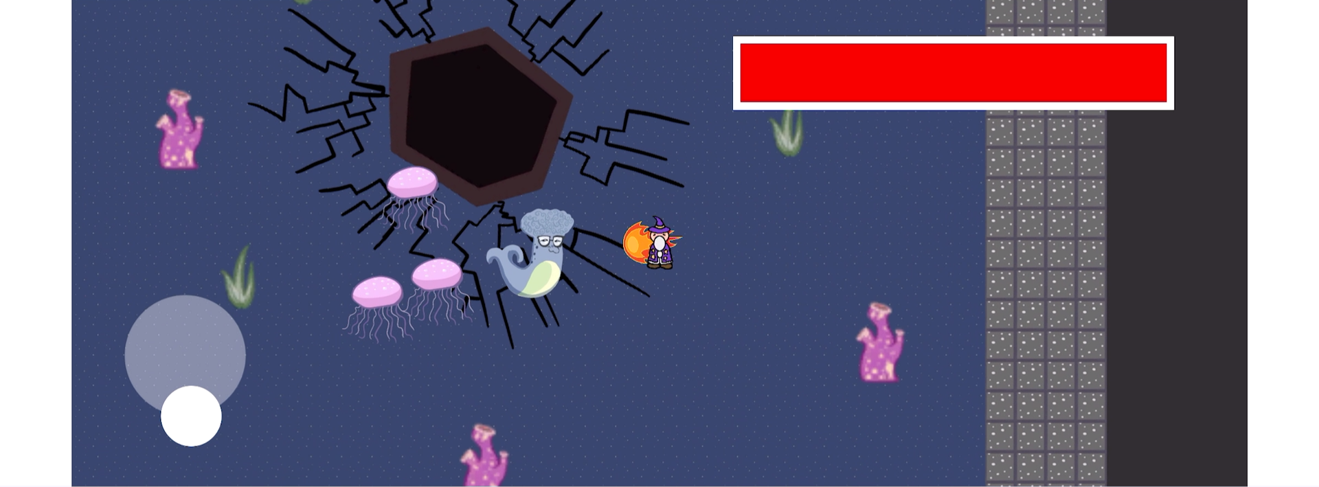 To move the wizard around the map, use the joystick on the left to move around. The joystick on the right is to let go when the spell is ready to cast. There will be a guide on how to draw certain spells to cast them. After you draw the spell, the wizard should glow, once you're ready, pull back on the right to release and cast the spell. When casting certain spells, be sure to carefully trace it until the wizard glows, otherwise it won't work. If you want to improves your spell casting watch the tutorial video found within the gallery.