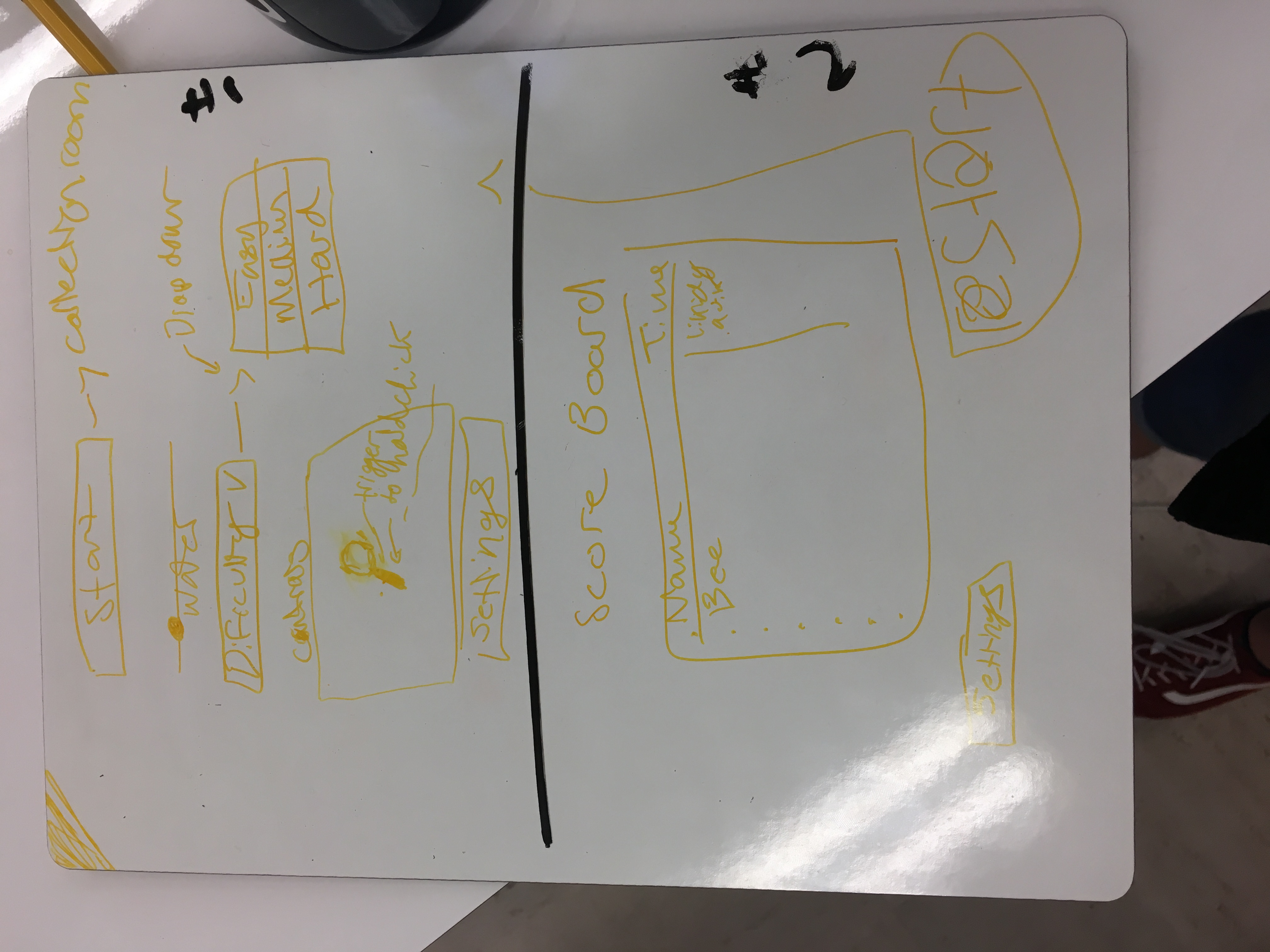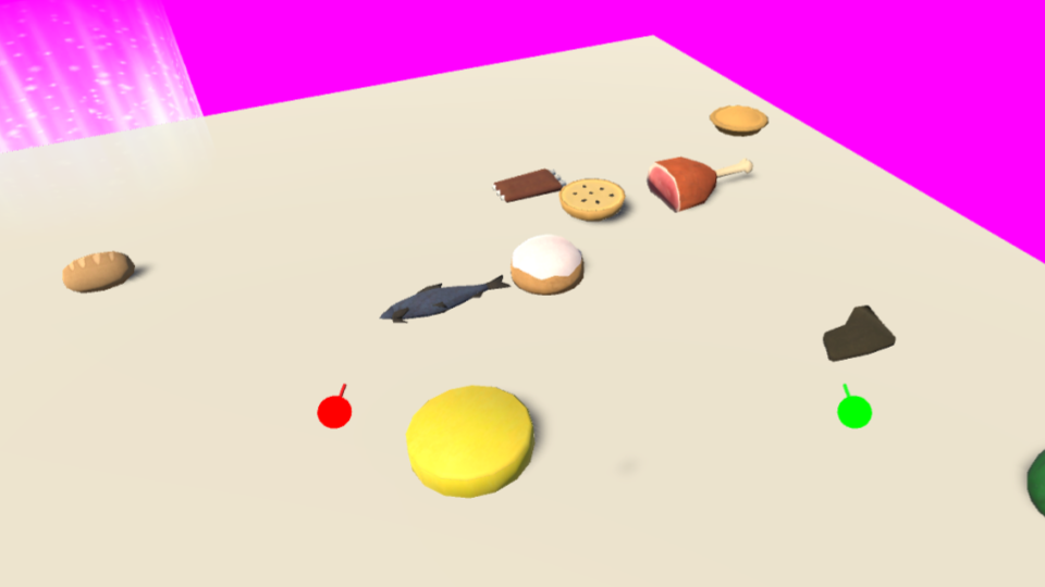 After the introduction you are in a dark room with a yellow button on the wall. This button transfers you into a different room called the collection room. In this room you only have 20 seconds to throw items into the portal to be put in the original room you are in. When you are in the original room you have your stats displayed on the wall telling you how much time you have left to drink or eat.