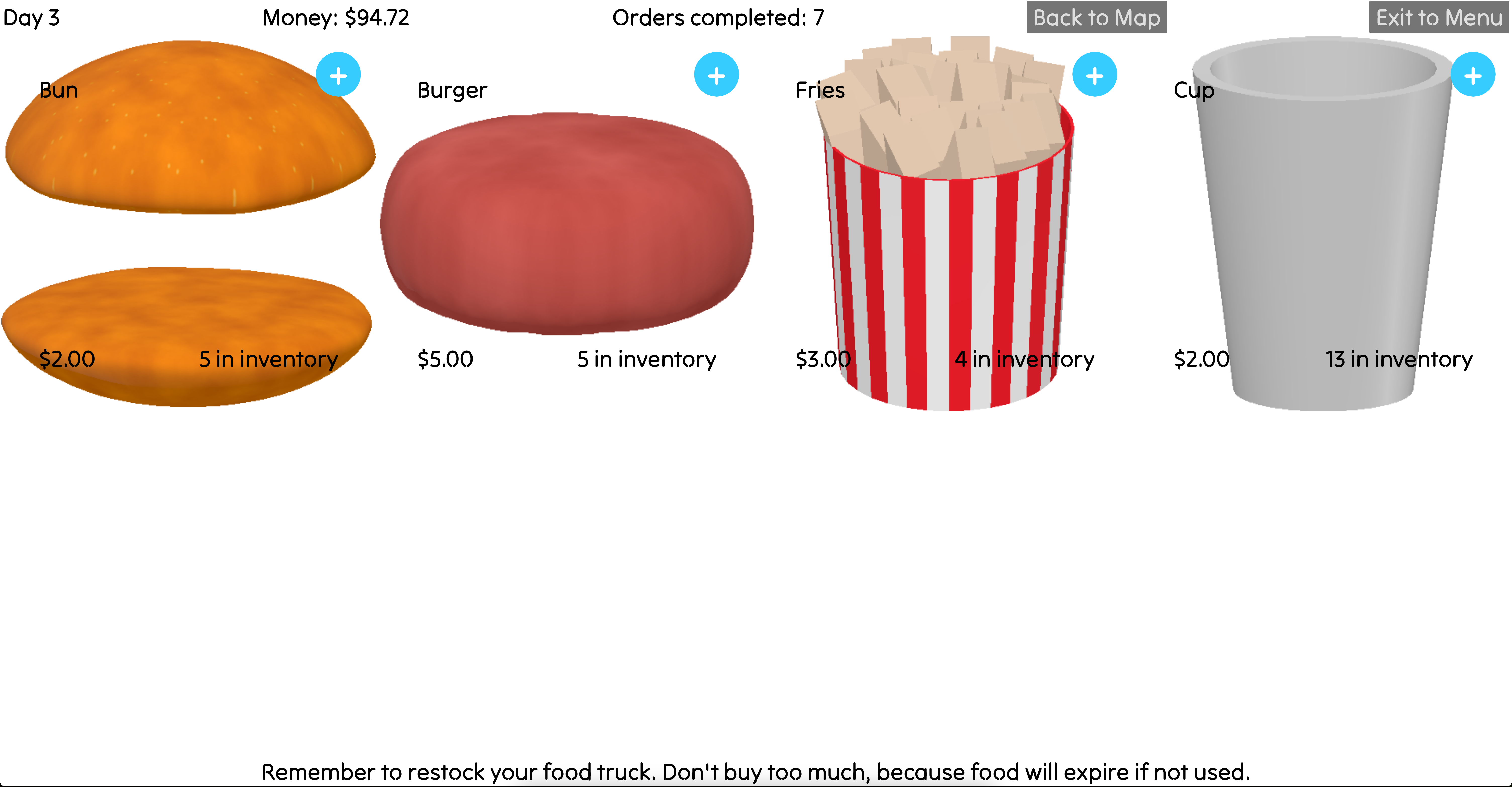 3. The better (and faster) you cook the customer's orders, the more money you'll earn.
